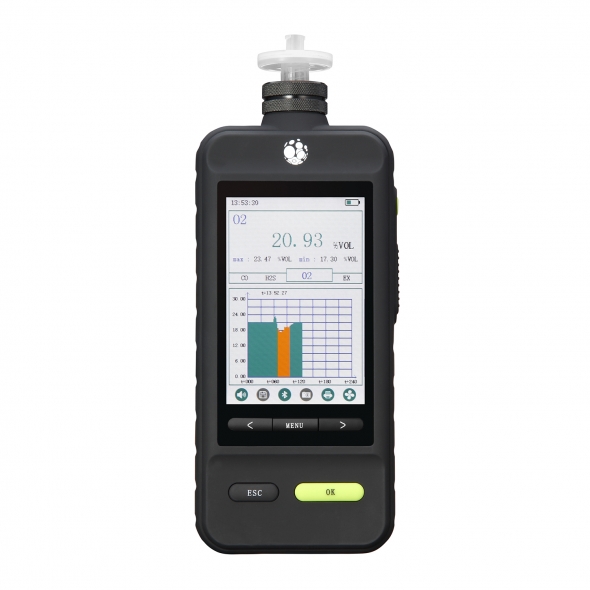 顯示內容:氣體名稱或氣體化學分子式、濃度數據、計量單位、氣體曲線走向、電池電量、時間、泵狀態等。選配:溫度、濕度、壓力、藍牙狀態、打印機狀態、截屏狀態等。