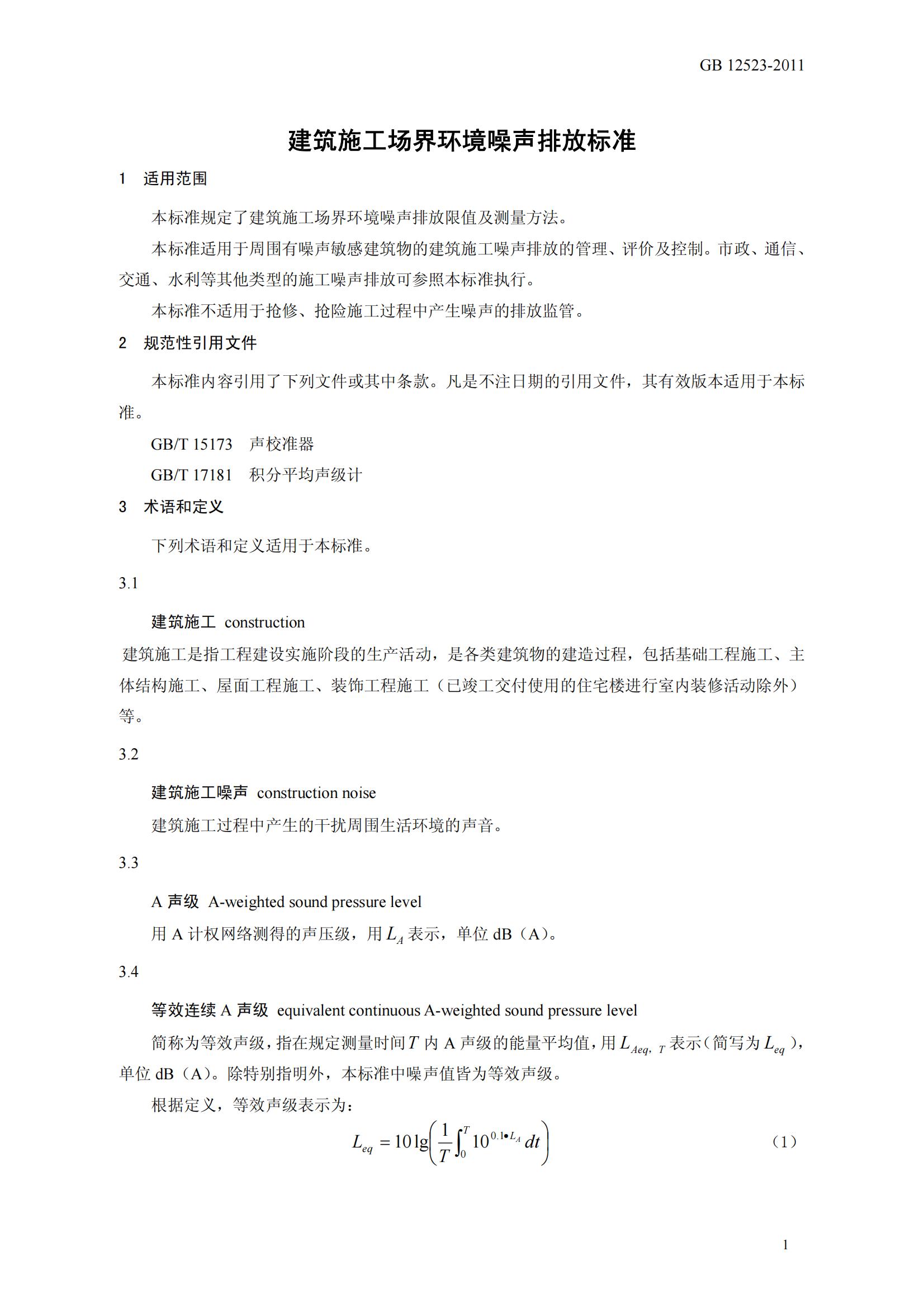 GB 12523《建筑施工場(chǎng)界環(huán)境噪聲排放標(biāo)準(zhǔn)》