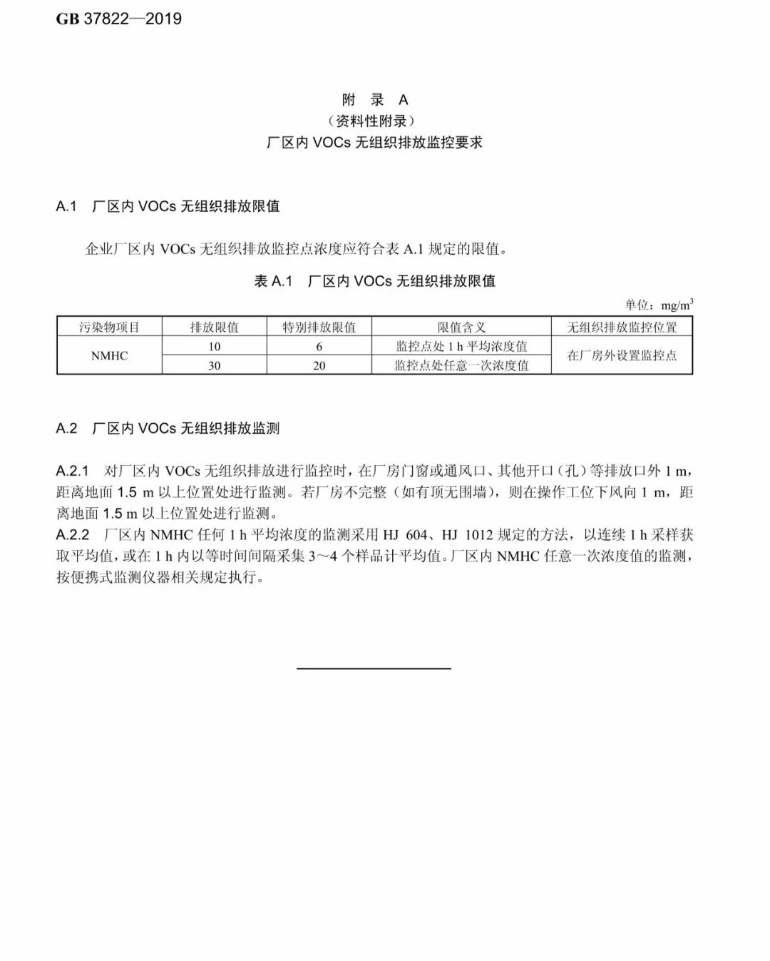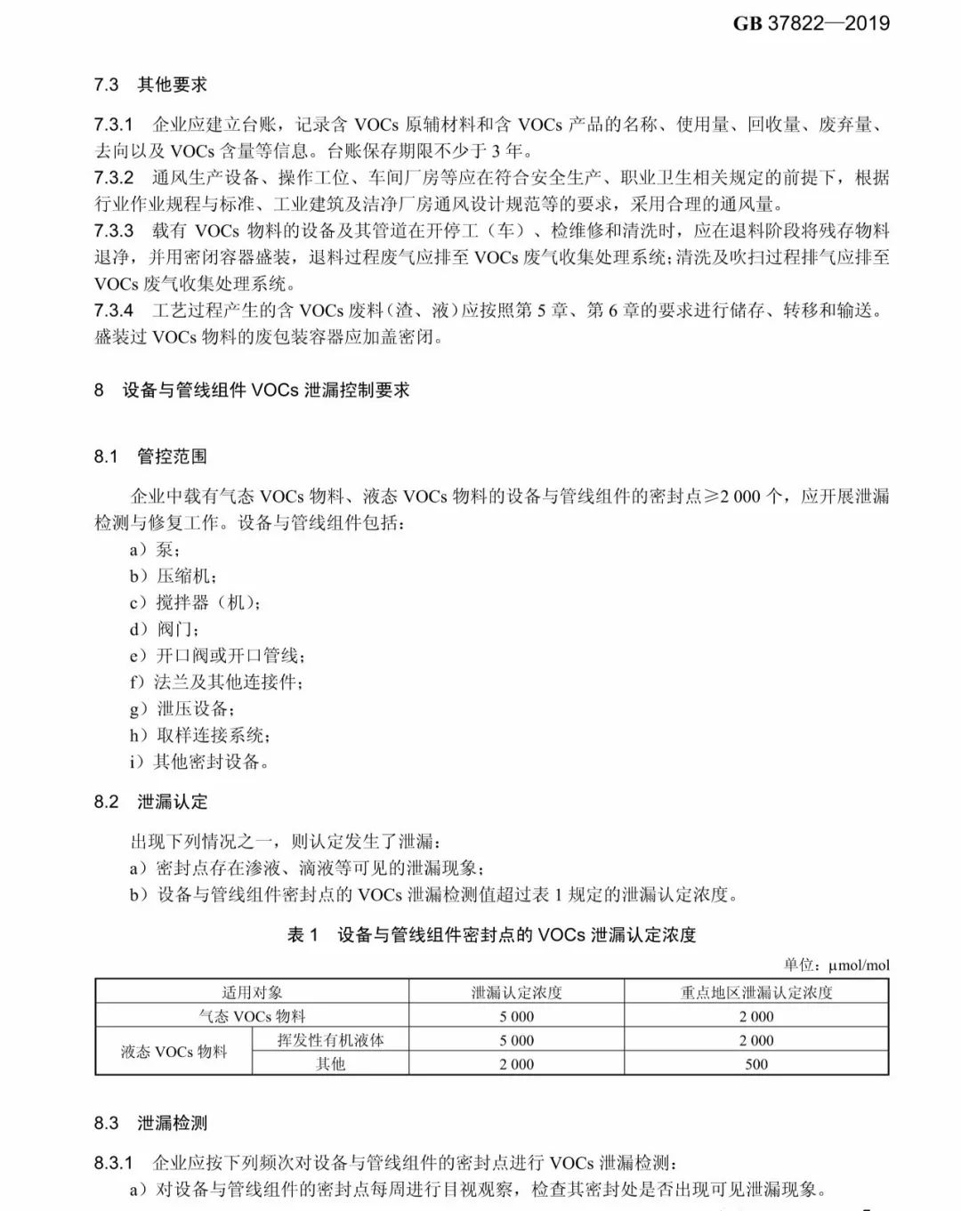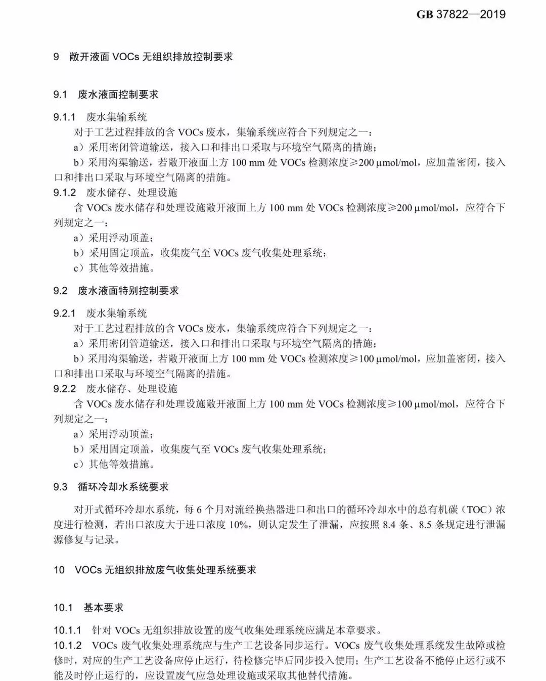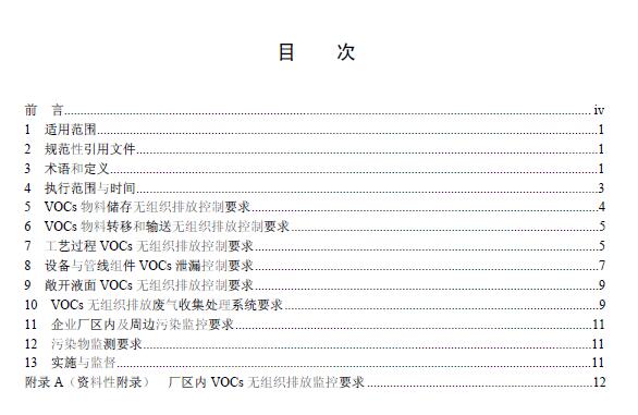 標準規定了 VOCs物料儲存無組織排放控制要求、VOCs物料轉移和輸送無組織排放控制要求、工藝過程 VOCs無組織排放控制要求、設備與管線組件 VOCs泄漏控制要求、敞開液面 VOCs無組織排放控制要求,以及 VOCs無組織排放廢氣收集處理系統要求、企業廠區內及周邊污染監控要求。