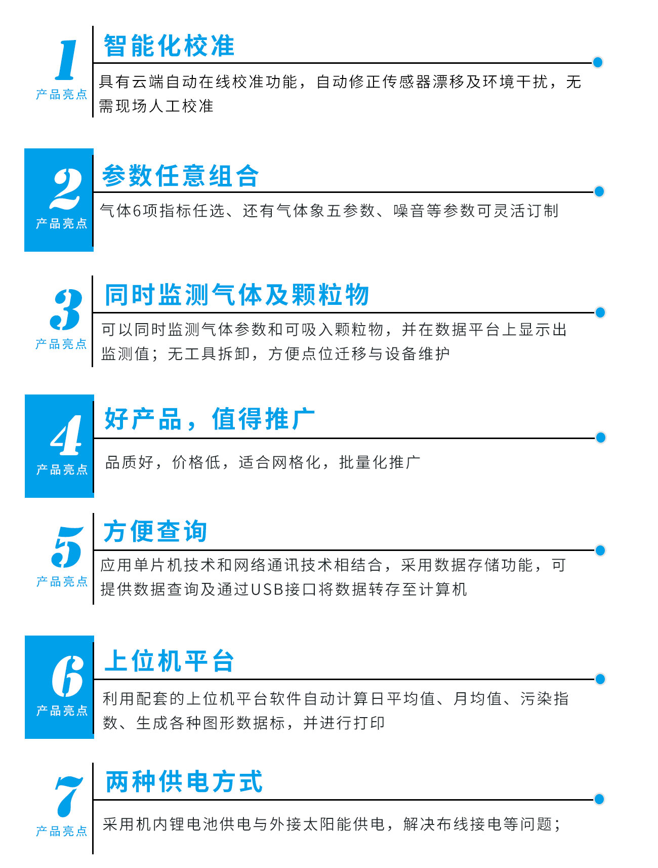 AIFLI-AQM大氣網格化監測站是我公司生產的新型空氣質量在線多參數監測系統,主要監測 PM2.5、PM10、CO、SO2、NO2、O3、TVOC、溫濕度等多種參數。建立大氣環境數據監測與分析系統,可以提高對大氣污染監測數據的處理和管理能力,為環境規劃和環境評價提供決策依據。企業化工園區,城市環境監測,市政環境監測,移動環境監測,交通污染環境監測居民區/學校/醫院空氣質量環境監測,公園/森林環境監測。