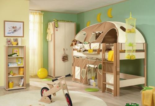 現(xiàn)在,有條件了,許多家長都給孩子安排了自己獨(dú)立的空間,而且爸爸媽媽都喜歡把孩子的房間打扮成五顏六色的童話世界,粉紅色的墻壁,藍(lán)色的天花板,多功能的書桌,色彩鮮艷的衣柜;房頂上掛著金燦燦的太陽、銀閃閃的月亮,地上鋪著卡通圖案的地毯。孩子成為童話世界里的王子和公主。